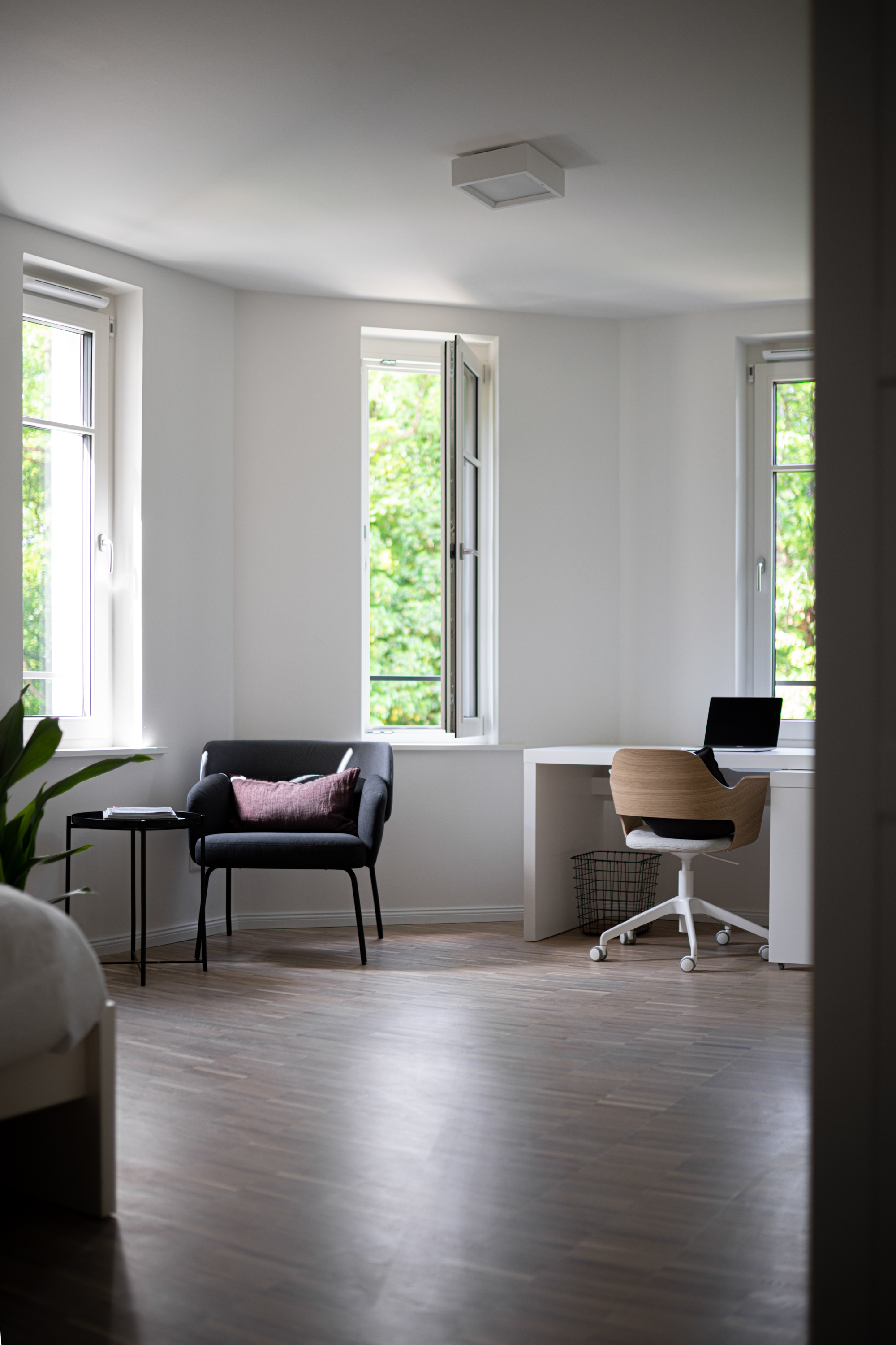 Jeder Stock verfügt über einen großzügigen Gemeinschaftsraum, einer modernen Küche und möblierten Zimmern. Mit einem Gigabit Netzanbindung bleibt die Verbindung auch zur Primetime flüssig und als Highlight lädt der große Garten mit altem Baumbestand dazu ein, seinen Feierabend im Grünen zu verbringen.