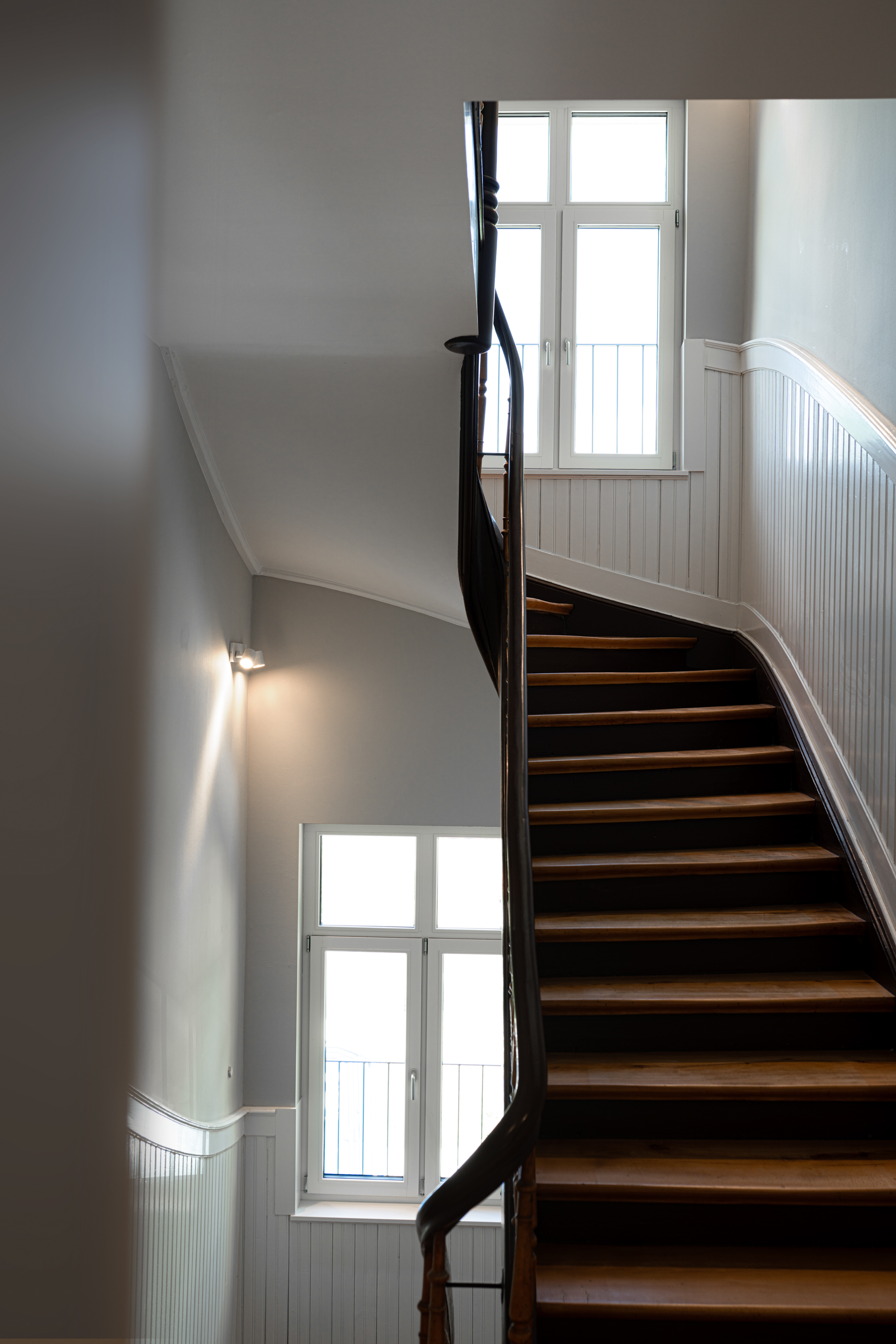 Jedes Stockwerk ist mit einer hochwertigen Küche ausgestattet und verfügt über großzügige Koch- und Gemeinschaftsbereiche. Die Stockwerke trennen dicke Schallschutzböden voneinander und sind – altbautypisch – durch das abgekoppelte Treppenhaus miteinander verbunden.