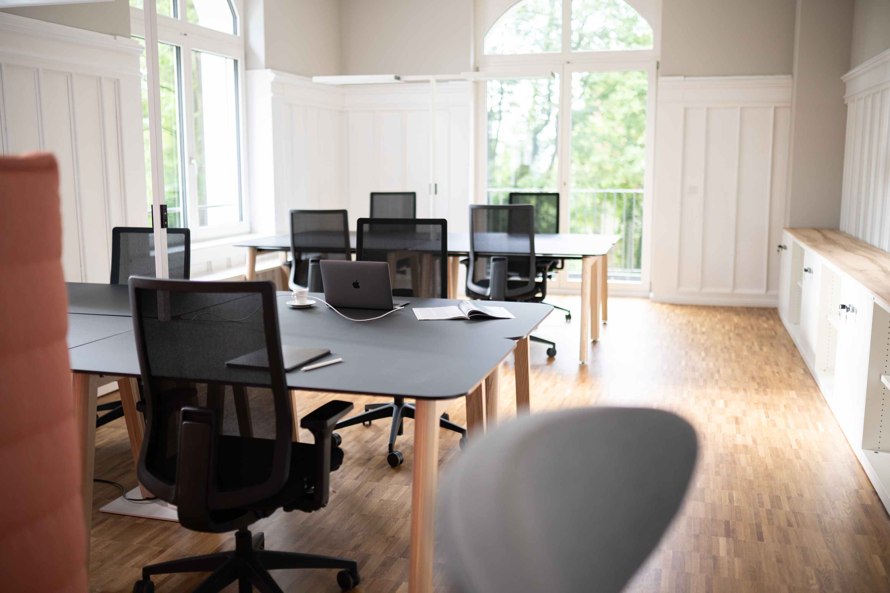 Platz für vier Personen, ausgestattet mit dem TapKey-System und 24/7 zur Verfügung. Und um mal auf andere Ideen zu kommen, stehen Garten und der Lounge zur Verfügung. Buche unseren Besprechungsraum dazu, wenn du einen Kunden empfangen oder per Video-Call am interaktiven Whiteboard überzeugen möchtest.