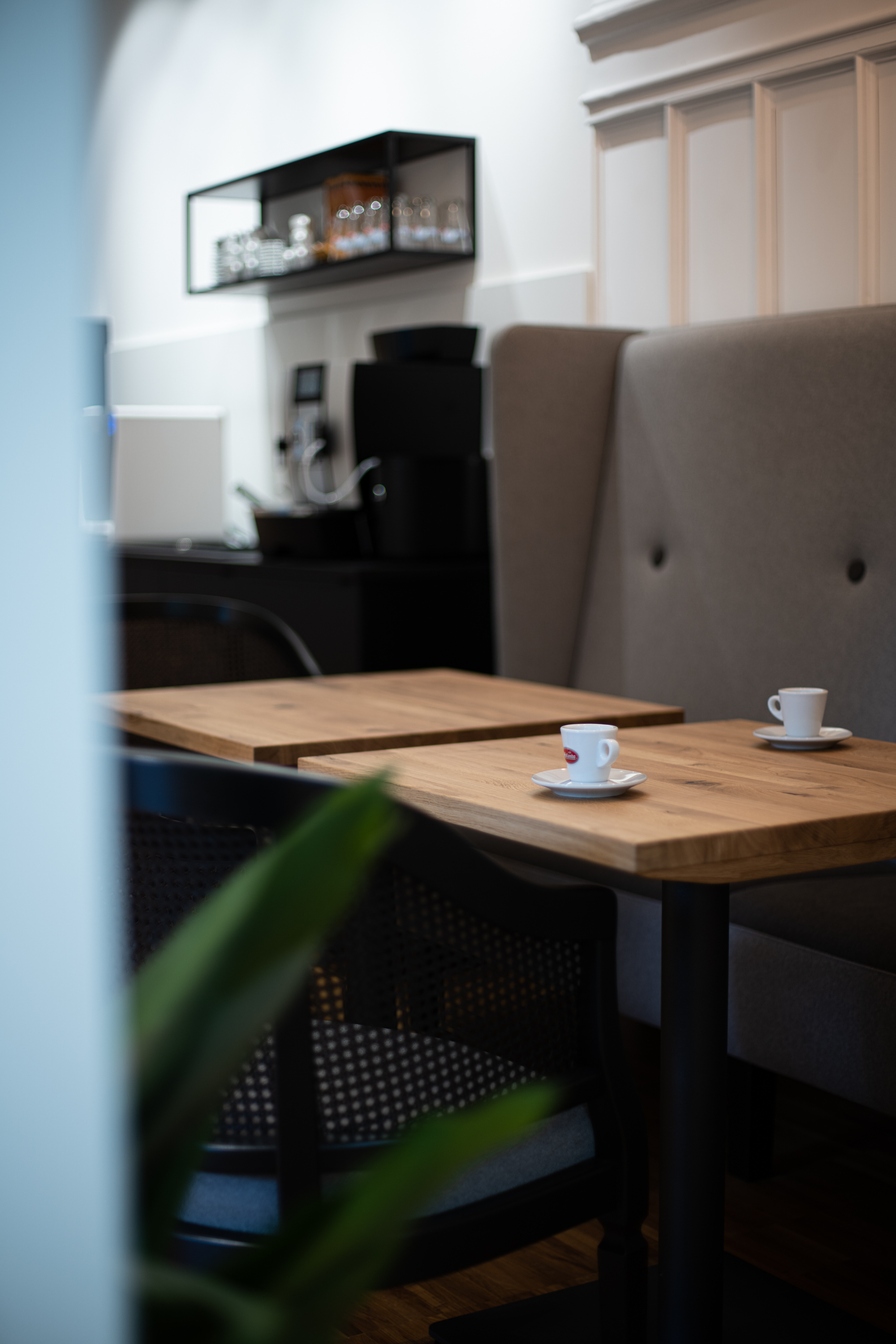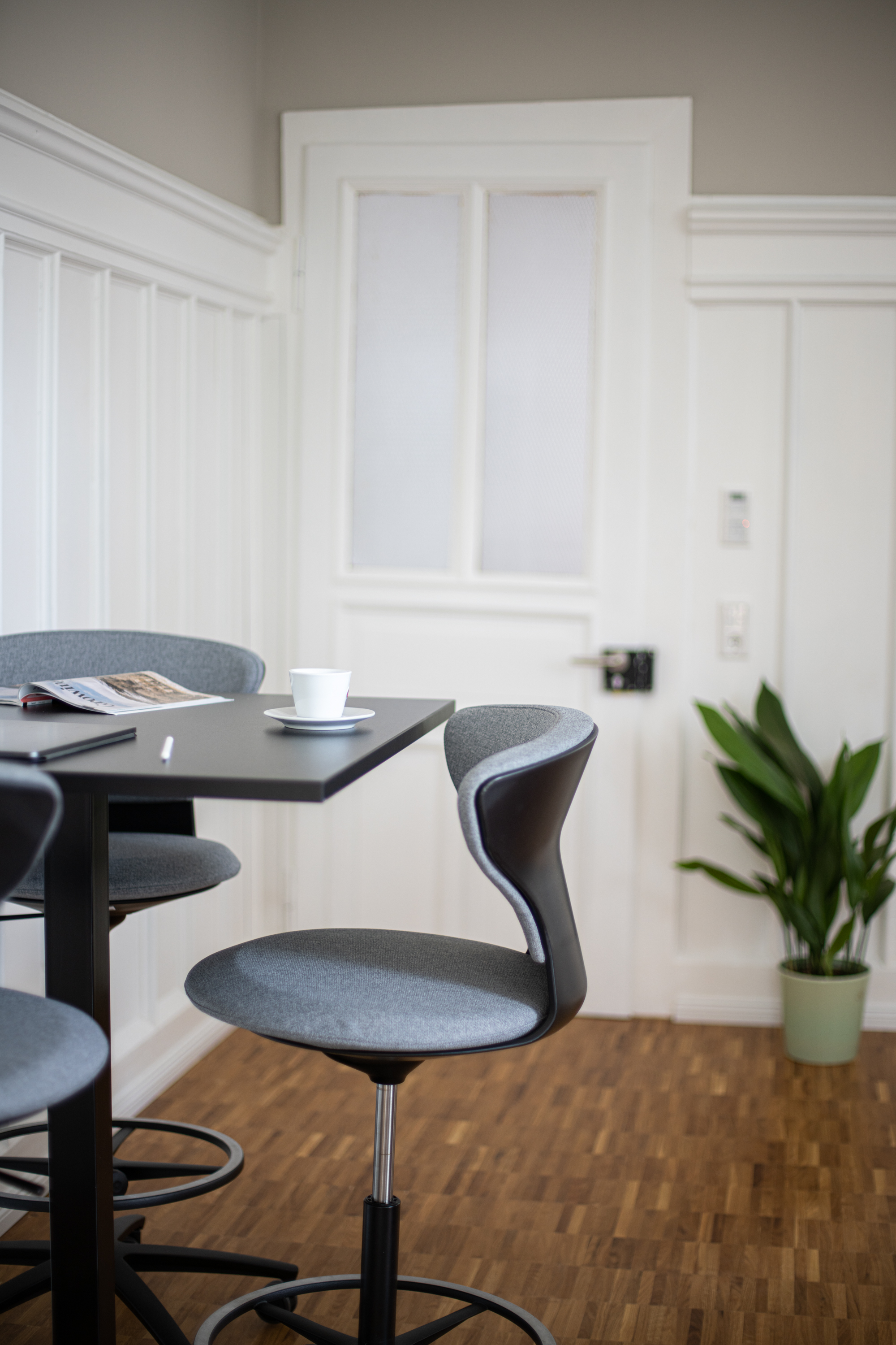 Ausgestattet mit verschließbaren Sideboards bleiben Akten oder Arbeitsstände unter Verschluss. Die Räume sind möbliert und die Küche steht zur freien Verfügung – inklusive Kaffee. Buche den Besprechungsraum, wenn du einen Kunden empfangen oder bei der nächsten Präsentation überzeugen möchtest.