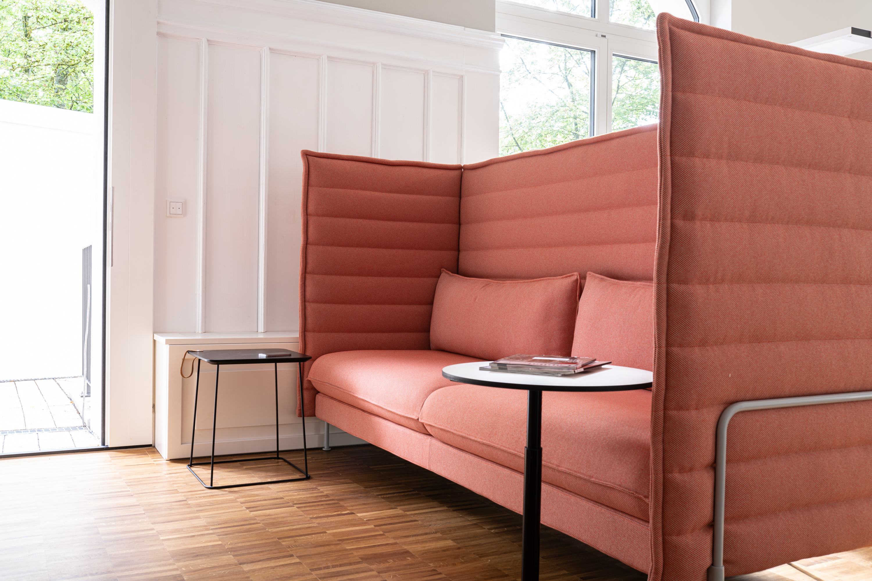 Ein 76’’-Präsentations-TV mit AppleTV und Apple AirPlay, Küchennutzung, Tee und Kaffee sind die Grundpfeiler für den starken Auftritt vor dem Kunden. Mit Platz für bis zu 6 Personen hast du hier auch die Möglichkeit Workshops zu geben.